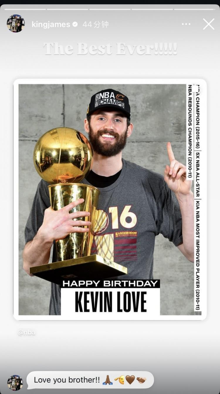 詹姆斯转发祝福乐福生日快乐:史上最好的!爱你,兄弟! xiaoqiao 2026年01月10日 18:00 69 0 直播吧9月8日讯 今日,湖人前锋詹姆斯更新了Instagram Story动态。詹姆斯转发NBA官方发布的为凯文-乐福庆生贴,并写道:“史上最好的!爱你,兄弟!”