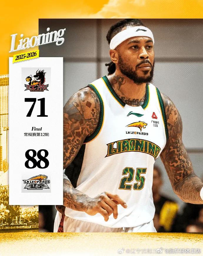 虎扑01月09日讯 CBA常规赛,辽宁88-71战胜江苏。