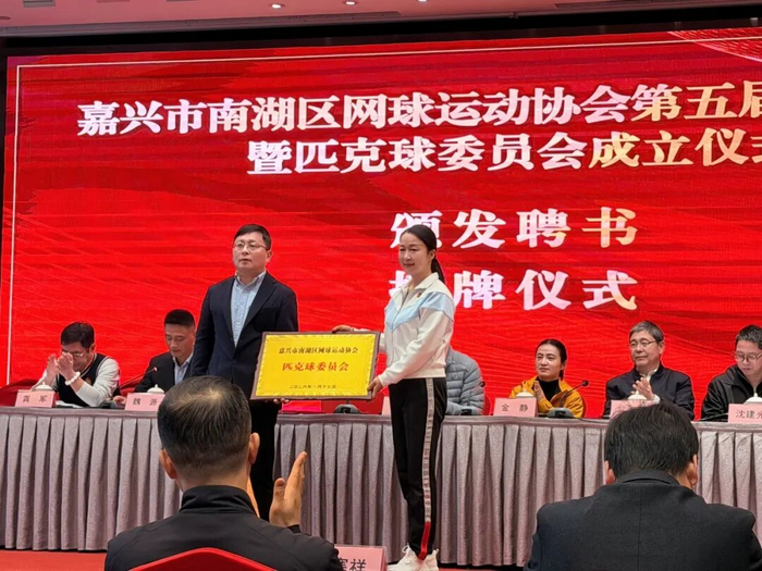 会议选举产生匹克球委员会委员和负责人,南湖区匹克球获授牌并正式成立。