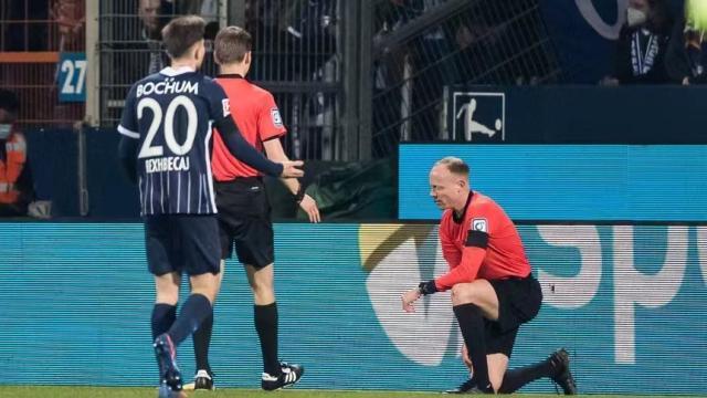 本轮早场,波鸿与门兴的比赛在第69分钟腰斩,原因是一位观众扔下了一个装满啤酒的杯子,砸中了边裁吉特尔曼。还好,这个杯子只是现场卖的一次性塑料杯子,否则后果将不堪设想。这位边裁立刻被送到了医院检查,主帅科尔图斯终止了比赛,并陪同边裁检查,他表示终止比赛是别无选择的决定。